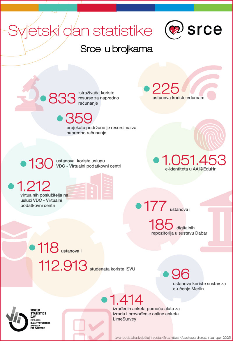 Budući da u Srcu veliku pažnju posvećujemo upravo statističkim podacima i transparentnosti podataka, a povodom obilježavanja Svjetskog dana statistike pripremili smo prigodnu infografiku Srce u brojkama za koju smo kao izvor podataka koristili Izvještajni sustav Srca.